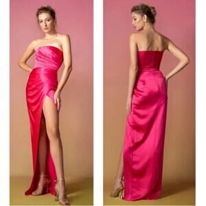 Sau Lee Priyanka Hot Pink Ruched Strapless Maxi Dress Size 2