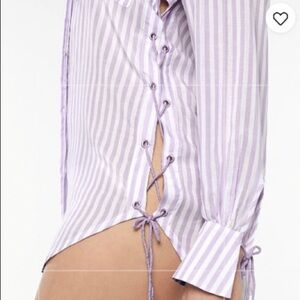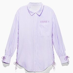 Not your average boyfriend tee. Our Coastal Stripe Woven Voile Sleep Long-Sleeve Shirt is perfect for a cozy, yet Savage night in. This sleep shirt features a patch pocket at chest with graphic logo print and a sexy side seam lace-up detail.