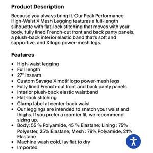SAVAGE X FENTY PEAK PERFORMANCE HIGH-WAIST X MESH LEGGING SIZE XL NWT