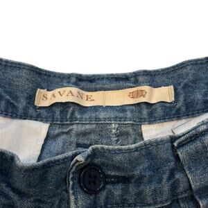 SAVANE Cargo Jean Shorts 32 Pockets Medium Wash Cotton Denim Retro Dad 6.5”