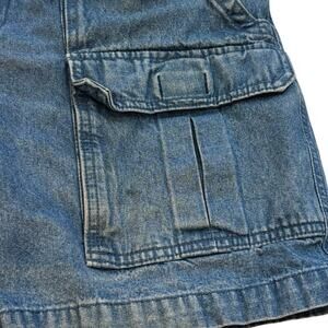 SAVANE Cargo Jean Shorts 32 Pockets Medium Blue Wash Cotton Denim Retro Dad