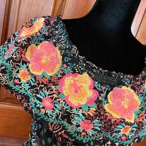 Gorgeous embroidery on this adorable top for a beautiful look that everyone loves. Sunshine array of colors. Wear it on or off the shoulder.