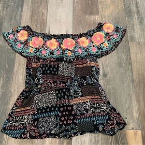 SAVANNA JANE || Off-Shoulder Floral Embroidered Sunshine Blouse - SZ large