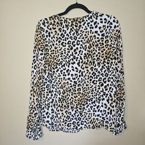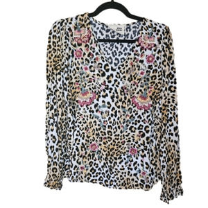 SAVANNA Jane Embroidered Floral and leopard print long sleeve top Size S…