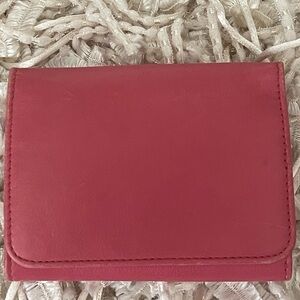 Beautiful RaRe SALVATORE FERRAGAMO Pink Compact wallet⭐️Pre-Lvoed with light signs of usage/marks/scratches etc. (see pics)⭐️creamy beige accent leather on front & dark butter soft leather interior with receipt/cash pocket⭐️Front snap closure opens to 2 pockets & back snap closure opens to 2 cash/receipt pockets⭐️Such a buttery soft leather interior wallet⭐️💯Authentic