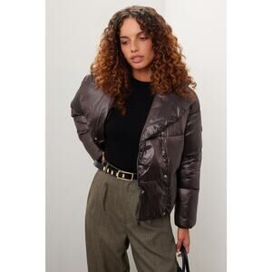 SAVE THE DUCK Ishya Puffer Black Brown Copper Moto Quilted Coat Jacket Size S