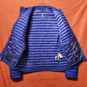 Material: Made from lightweight, water-repellent nylon and filled with PLUMTECH®, a synthetic down alternative that is breathable and provides insulation.