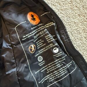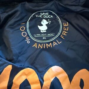 Stylish navy puffer with bold orange interior. Perfect for cool weather. Lightweight and comfortable. Like new