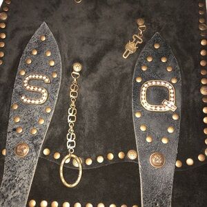 SAVE THE QUEEN Black Suede Studded Large Crossbody Bag Detachable Strap.