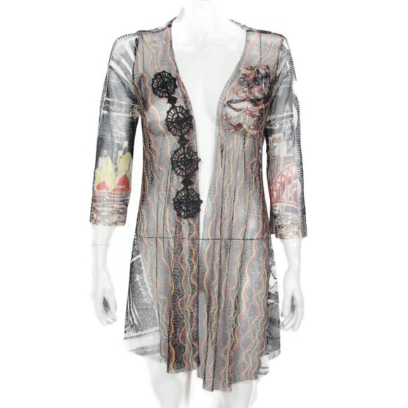 SAVE THE QUEEN Mesh Gothic Mixed Print Open Cardigan Sweater Womens size L /655