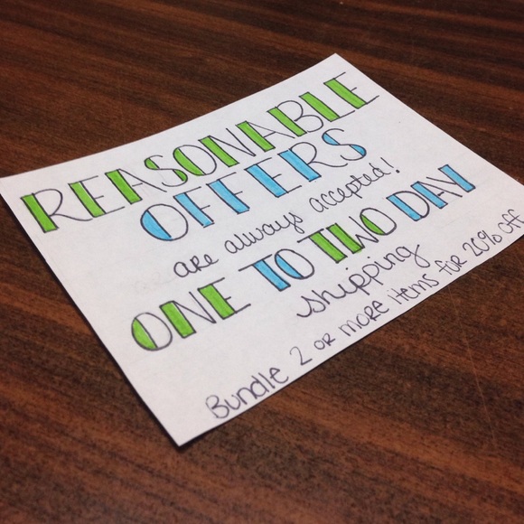 I will accept all reasonable offers unless otherwise stated in the items description! Shipping will always be between 1-2 week days (if this is not feasible I will contact the buyer directly when the item is purchased). Bundle two or more items for 20% off and savings on shipping!