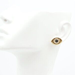 Savvy Cie design sterling silver gold plated, multicolor cubic zirconia Evil Eye stud earrings are approx. 6/8" wide, 7/16" long with butterfly fastening.