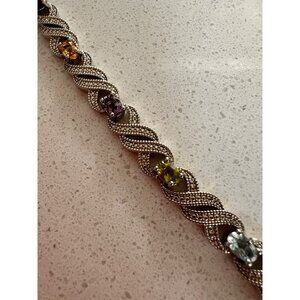 Add glitz and glam to your party-ready style with this chain bracelet highlighted by diamonds and colored by blue topaz, citrine, garnet, peridot and amethyst.