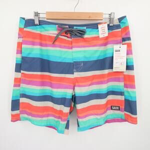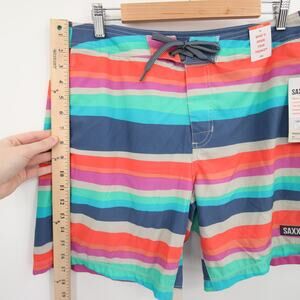 SAXX Betawave Swim Trunks Multicolor Striped Board Shorts Quick Dry Size 34 NWT