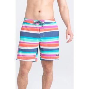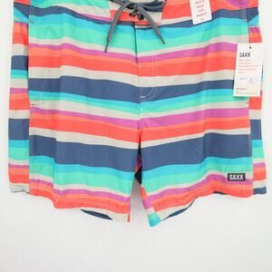 SAXX Betawave Swim Trunks Multicolor Striped Board Shorts Quick Dry Size 38 NWT