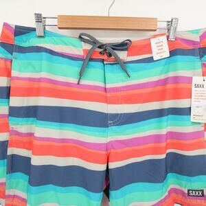 SAXX Betawave Swim Trunks Multicolor Striped Board Shorts Quick Dry Athletic Beach Activewear Size 38 NWT