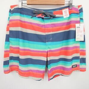 SAXX Betawave Swim Trunks Multicolor Striped Board Shorts Quick Dry Athletic Beach Activewear Size 38 NWT