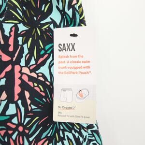 SAXX Go Coastal Swim Trunks Volley Board Shorts Black Tropical Floral Quick Dry Cooling Size XXL NWT
