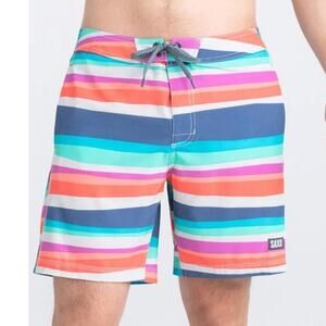 SAXX Swim Trunks Board Shorts Betawave Multicolor Striped Quick Dry Size 34 NWT