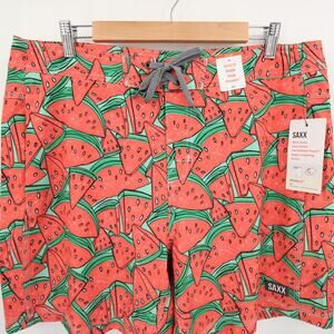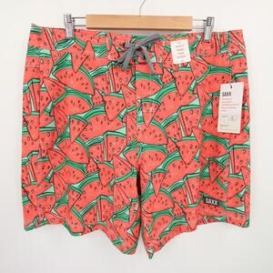 SAXX Swim Trunks Red Green Watermelon Print Betawave 2N1 Cooling Liner 36 NWT