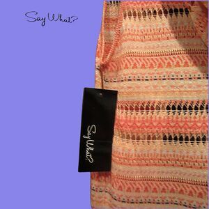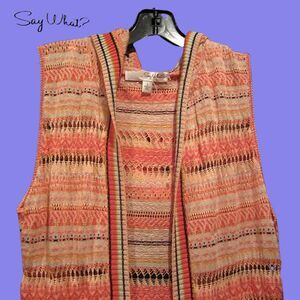 SAY WHAT? NEW Bohemian Striped Open Knit Mid-Length Hoodie Vest S
