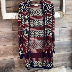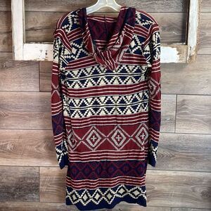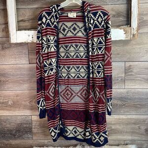 SAY WHAT NY Ladies Hooded Cardigan Southwestern Aztec Open Front Sweater OS