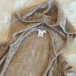 Knitted cardigan,Preowned in very good condition, hoodie unremovable, no closure drape style , length on the back 40”,on front little loner and uneven