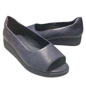 SAYDO Navy Blue Leather Peep Toe Wedge Heel Women's Comfort Shoes Size