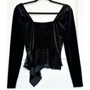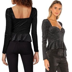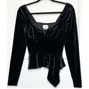 SAYLOR 90s Velvet Long Sleeve Square Neck Fitted Bustier Style Draped Peplum Top
