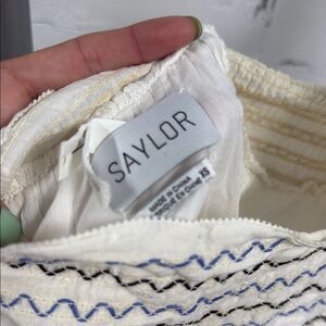 SAYLOR Cream and Blue and Red Embroidered Baby Doll Halter Dress - Size XS