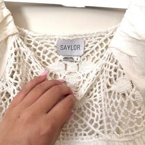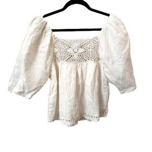 SAYLOR Crochet Babydoll Puff Sleeve Blouse Sz Small