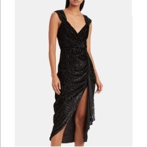 SAYLOR Farrah Tiger Metallic Velvet Burnout Divoré Wrap Style Midi Slit Dress