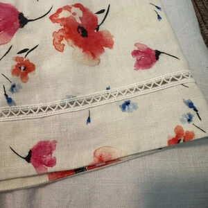 Super cute linen floral, ruffle detail mini dress in excellent preowned condition. Very cute dress, super flattering. Dress can be worn over the shoulder or off the shoulder. Smoke free home.