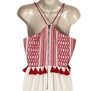 SAYLOR Flynn Cut Out Tassel Trim Maxi Dress Red Cream Size Small