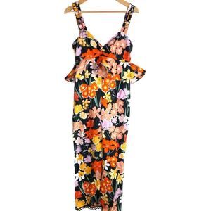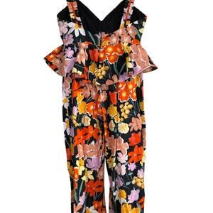 SAYLOR INES Poplin Jumpsuit Sweetheart Neckline Rust Floral-Print S