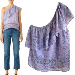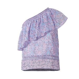 SAYLOR One Shoulder Janice Top Floral Purple Ruffles Chiffon Fabric Blouse Small