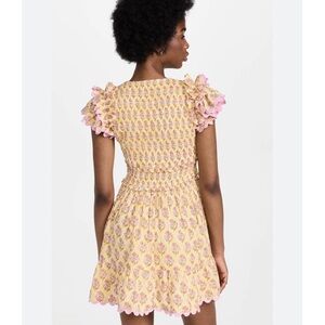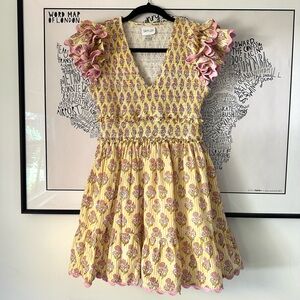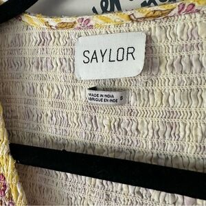 SAYLOR Ottessa Mini Dress Yellow Pink Floral Smocked Pleated Size Small S
