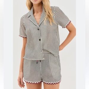 SAYLOR VERNA STRIPE CROCHET KNIT SHORT SET BLACK WHITE SMALL