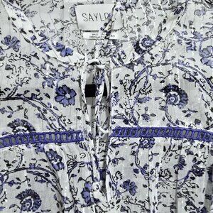 SAYLOR - XS Sunday Lurex Dusty Blue Floral Blouse Top