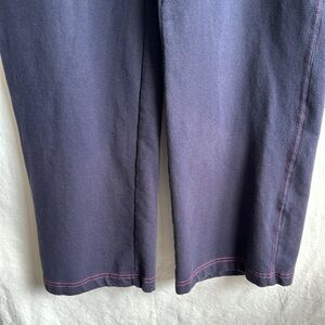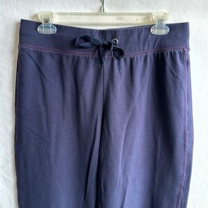 SB Active navy wide leg lounge/exercise pants, size M. Good preowned condition. Drawstring waist. Cotton and spandex blend. Pink stitching.
