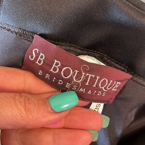 SB BOUTIQUE formal strapless midi dress black chiffon overlay fit and flare 6/8