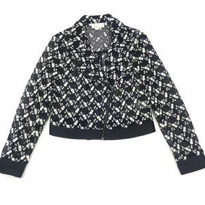 ❤️SB BY SACHIN & BABI Sheer Floral Embroidery Black White Moto Jacket Size Small