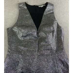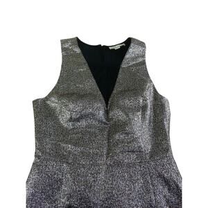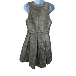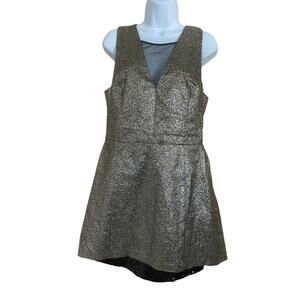 SB by Sachin & Babi Metallic Fit & Flare Mesh V-Neck Mini Party Dress Sz 10 Gold
