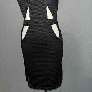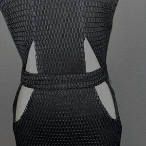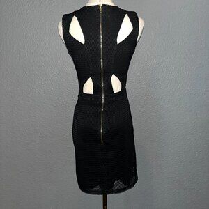 SB by sheri bodell LBD Mini Dress Heavy Net and Multiple Cut Outs Exposed Zip XS