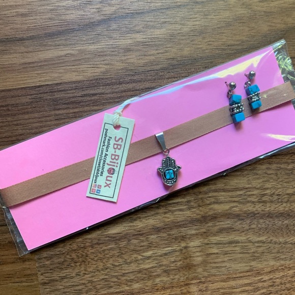 Hansa Hand charm with Blue Turquoise Stone,