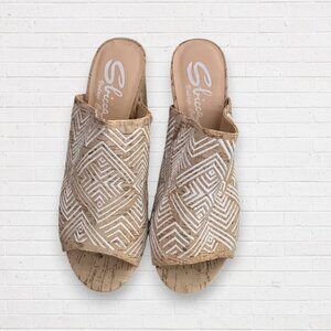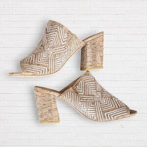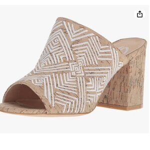 SBICCA Paraiso Embroidered Geometric Pattern Cork Heeled Mule Sandal Women's 9
