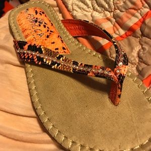 Very cute sandals! GOOD used condition. Orange ,brown & black with sparkles👓