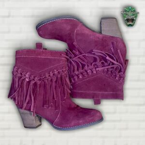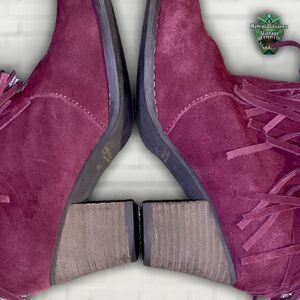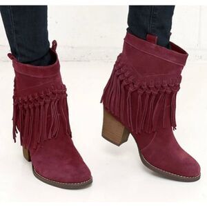 Sbicca Sound Wine Red Suede Leather Fringe Boots, Size 8.5 Boho Vibes
