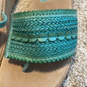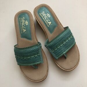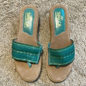 SBICCA Women Thong Wedge Sandals Cora Size 10 Teal Slide Preppy Bohemian Hippie