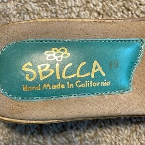 SBICCA Women’s Thong Wedge Sandals Cora Size 10 Natural & Teal Slide
